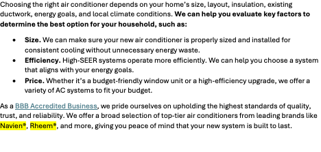 As a BBB Accredited Business, we pride ourselves on upholding the highest standards of quality, trust, and reliability. We offer a broad selection of top-tier air conditioners from leading brands like Navien®, Rheem®, and more, giving you peace of mind that your new system is built to last.